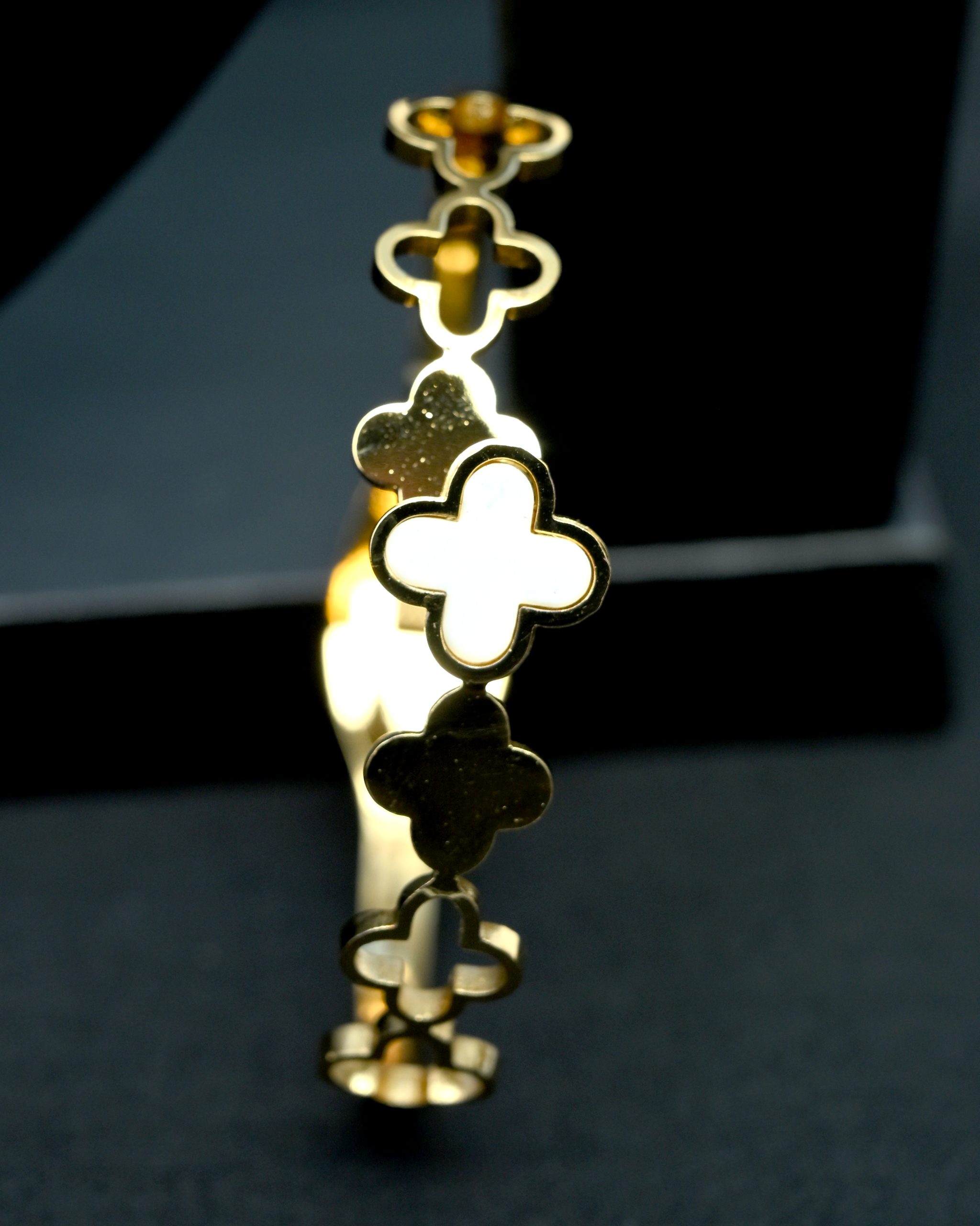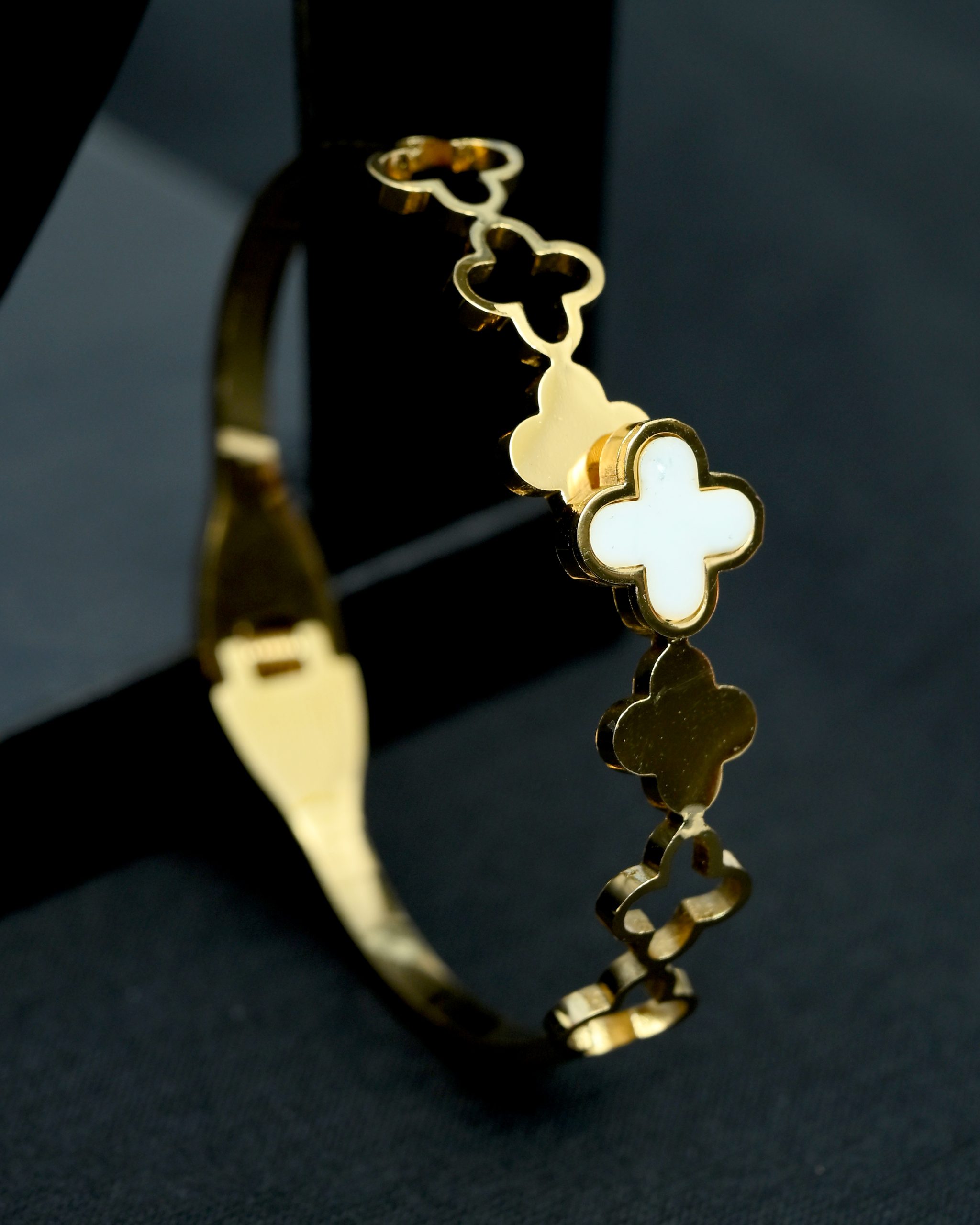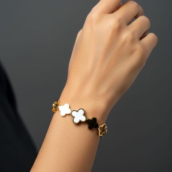 The Divine Clover Bracelet by Pettagam brings the allure of good fortune to your wrist. Inspired by the timeless four-leaf clover, this bracelet features a series of gold-plated clover motifs with contrasting white enamel accents — radiating both purity and sophistication.