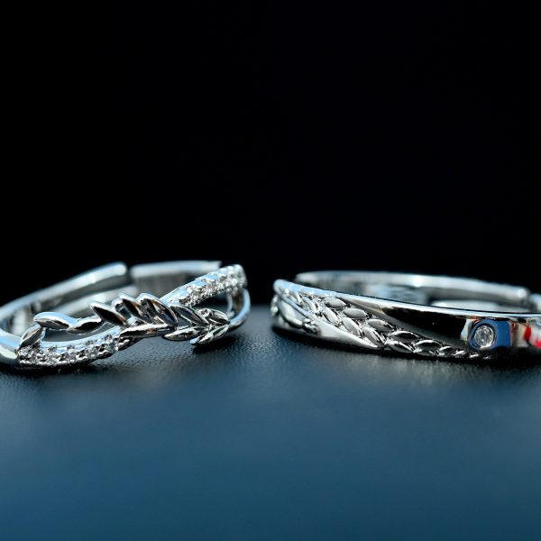 Crafted with a high-quality silver finish, this adjustable couple ring set perfectly complements each other — one with a subtle leaf engraving for him, and one with a stone-accented leaf pattern for her. Together, they represent balance and connection in every relationship.
