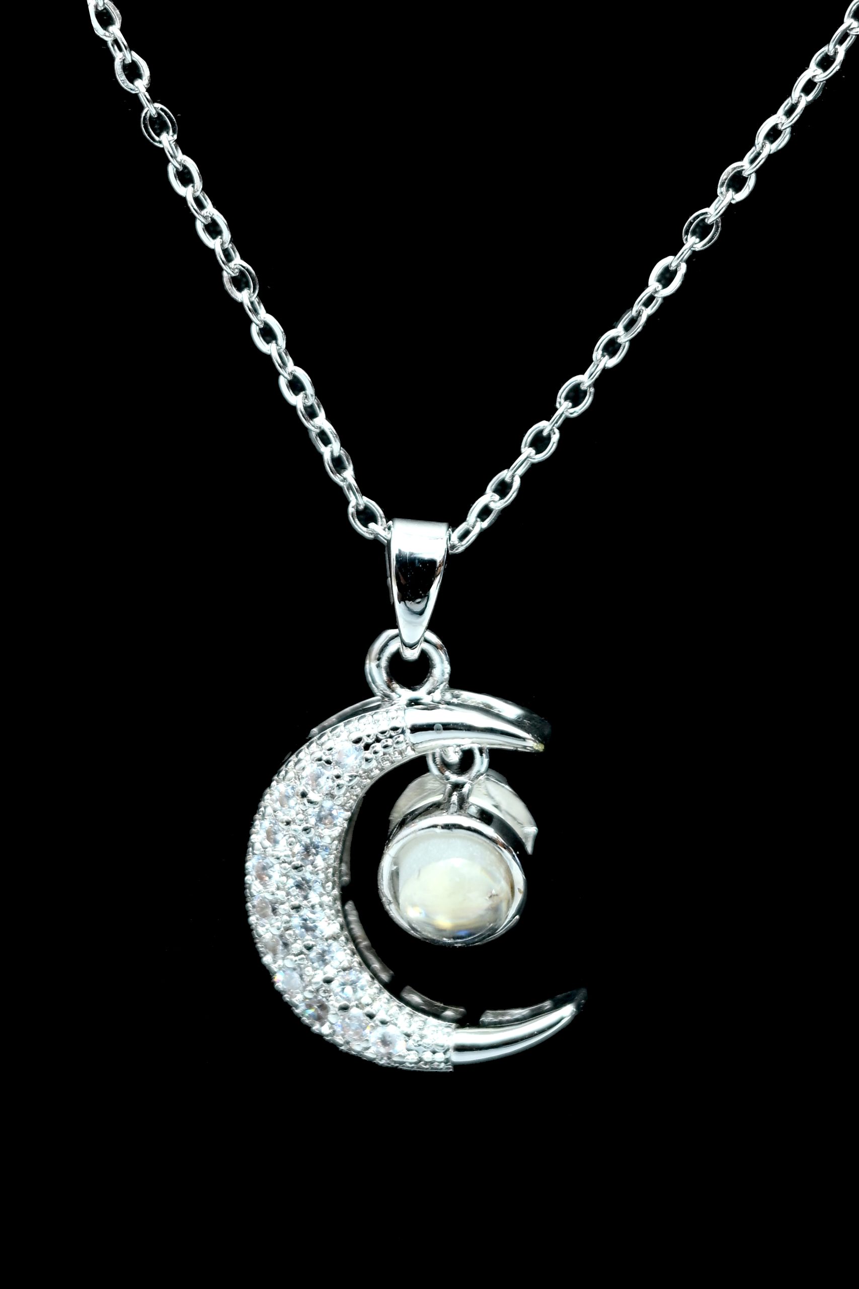 Whether you wear it to symbolize serenity or style, the Moonlight Glow Silver Necklace is sure to make every look luminous and unforgettable.