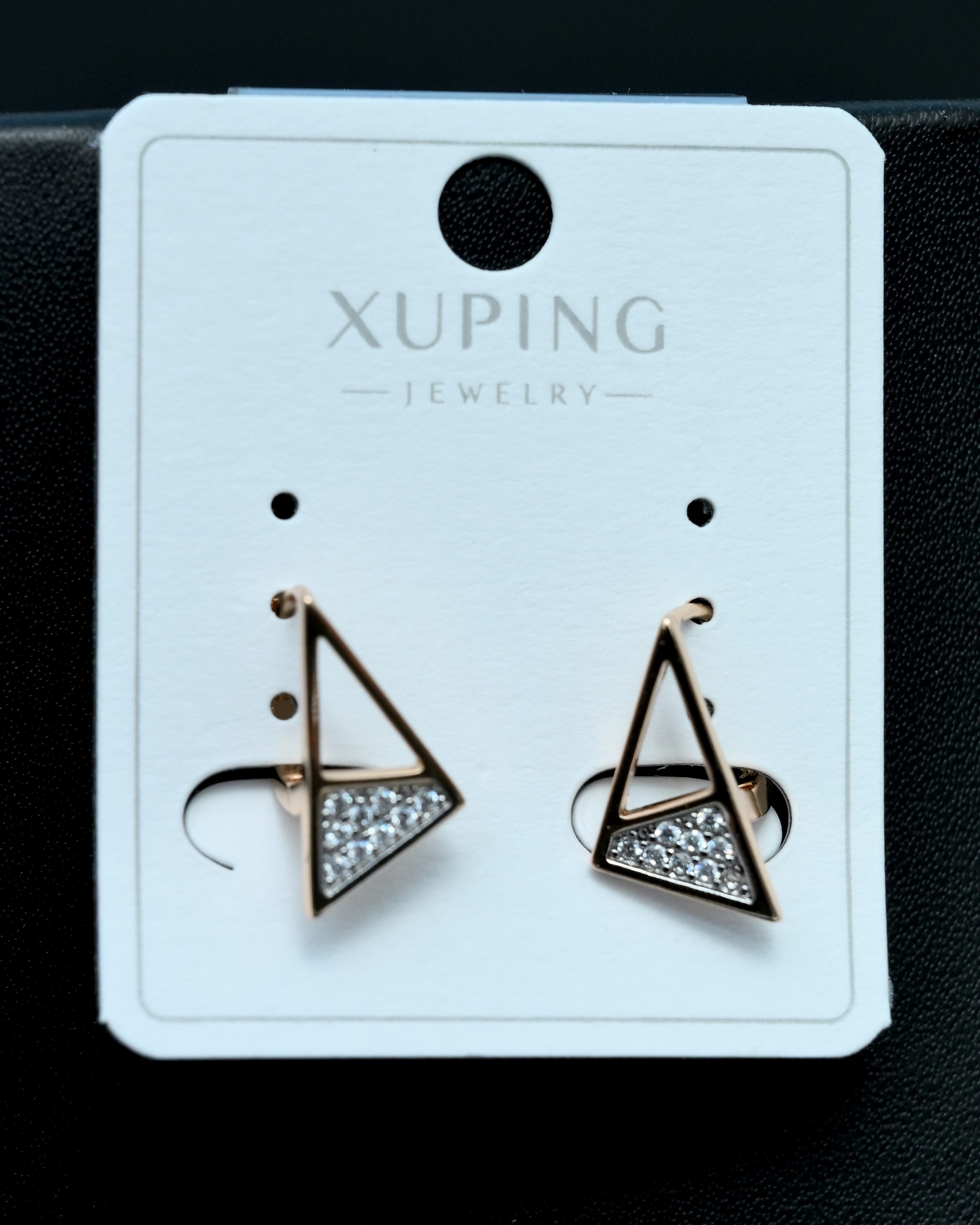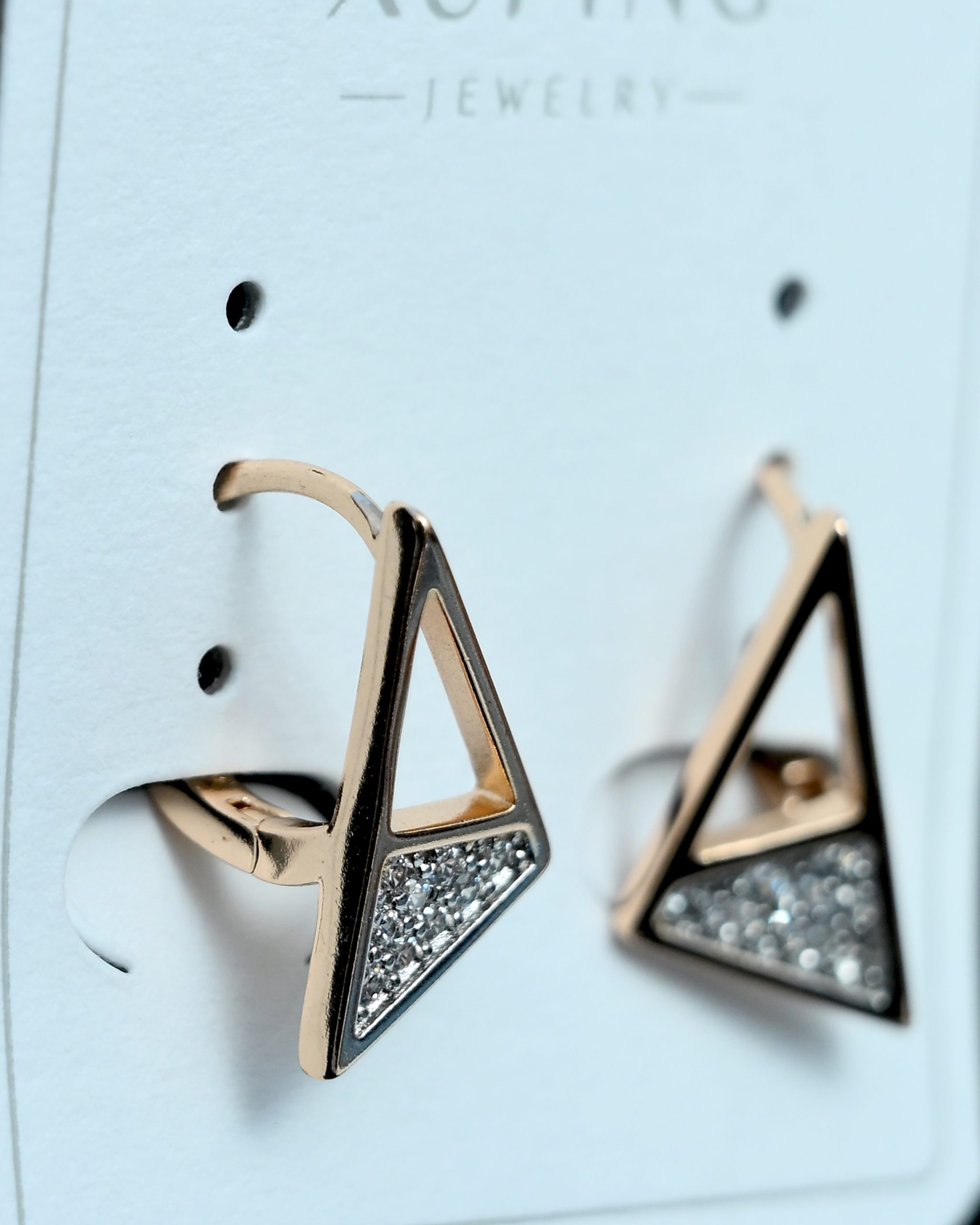 Unique geometric triangle design with crystal accents