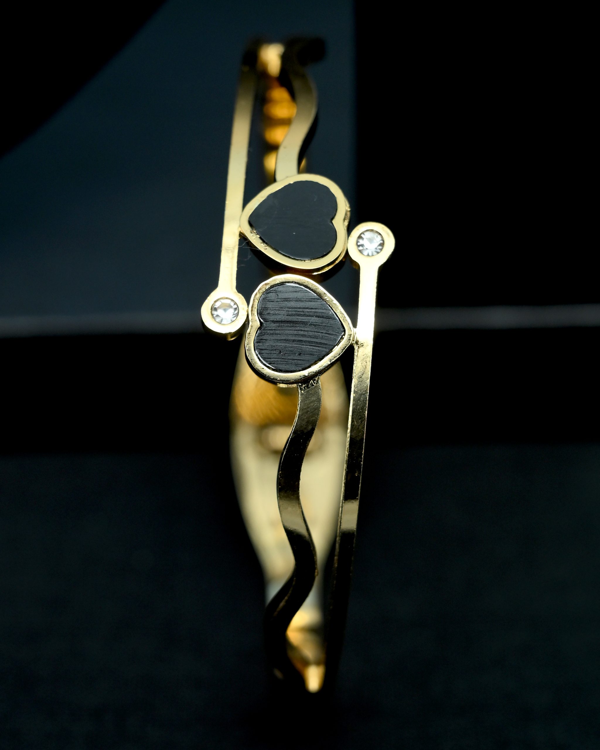 The Twin Heart Bracelet by Pettagam is designed for women who adore minimal elegance with a dash of emotion. Crafted in a luxurious gold-tone finish, this bracelet features two glossy black heart charms, symbolizing connection, affection, and everlasting love.